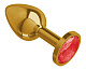 Золотистая анальная втулка с красным кристаллом - 7 см.