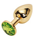 Золотистая металлическая анальная пробка с зеленым стразом - 7,6 см.