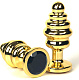 Золотистая ребристая анальная пробка с черным кристаллом - 7 см.