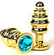 Золотистая ребристая анальная пробка с голубым кристаллом - 6 см.