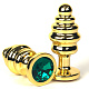 Золотистая ребристая анальная пробка с зеленым кристаллом - 7 см.