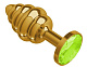 Золотистая спиралевидная анальная пробка с салатовым кристаллом - 7 см.
