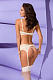 Соблазнительный комплект нижнего белья Emma состоит из бюстгальтера с полуоткрытыми чашками на косточках, пояса для чулок и трусиков-стрингов. Бретели и подвязки регулируются по длине, на спинке застежка на крючки-петли. Изделие декорировано цветочным узором, эластичными стрэп-лентами и атласными бантиками. В комплекте: бюстгальтер, трусики-стринги, пояс для чулок.