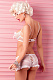 Кружевной бюстгальтер на жестких косточках, чашки декорированы шнуровкой, бретели регулируемые. Трусики выполнены из кружева в сочетании с тонким тюлем, декорированы оборками и бантиками, шнуровка по центру. В комплекте: бюстгальтер, трусики.