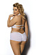 Сногсшибательный комплект девственно-белого цвета покоряет с первого взгляда. Лиф на жестких косточках и удобные застежки на спине идеально держат грудь. Тонкий прозрачный белый шифон нежно облегает желанные полушария груди. Плетеная бретель через шею декорирована металлическими кольцами, выполненными из гипоаллергенного материала. Оригинальные трусики из шифона и тесьмы зрительно приподнимают ягодицы. В комплекте: лиф и трусики.