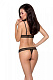 Соблазнительный комплект нижнего белья из двух предметов. Мягкие чашечки бюстгальтера выполнены из кружева и украшены декоративной шнуровкой. Нижняя часть изготовлена из прозрачной вуали. Бретели регулируются по длине. Трусики-стринги с пикантной кружевной вставкой и шнуровкой спереди, также изготовлены из вуали с окантовкой. В комплекте: бюстгальтер и трусики-стринги.