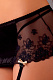 Широкий пояс с непрозрачной вставкой из эластичного сатина не скроет ни пышности бёдер, ни аккуратных трусиков-стринг. В комплекте: бюстгальтер, пояс, трусики-стринг.