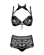 Комплект белья из коллекции Elizenes из гипюра и вуали: бюстгальтер мягкий на косточках, тонкие бретели регулируются по длине, на спине застежка-удлинитель, между чашек шнуровка. В зоне декольте бретели соединяются с кружевным чокером, на шее застёжка. Трусики-панти с высокой линией талии. В комплекте: бюстгальтер, трусики.
