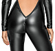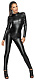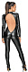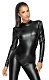 Высокоэластичный комбинезон с длинными рукавами, облегающий покрой, в сексуальном wet-look. Элегантный воротник-стойка застегивается на пуговицы на шее. Застежка-молния в промежности.