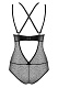 Боди из полупрозрачной сетки с декоративной вставкой из ткани с мокрым эффектом. Регулируемые бретели перекрещены на спине.