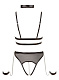 Это черное боди - больше, чем просто предмет одежды, потому что оно приглашает вас поиграть. На животе делится на верхнюю и нижнюю части, которые соединяются ремнем. Регулируемые по длине ремни верхней части обеспечивают оптимальную посадку. Нижняя часть соблазнительно открыта в промежности - через нее проходит только съемная металлическая цепь с защелкивающимся крючком. Две подтяжки спереди регулируются по длине. Два кольца по бокам имеют особую функцию: к ним можно прикрепить наручники с застежками-липучками с помощью съемных металлических цепей (длина 28 см) с застежками-крючками. Так что ничто не мешает эротическому рабству! Экипировка комплектуется закрытым воротником на липучке с кольцом. В комплекте: боди, ошейник, наручники.