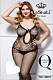 Комбинезон прикрывает тело от самых пяточек, а вверху полностью оставляет руки, декольте и спинку и немного открытыми, смотрясь как прозрачный бюстгальтер. Нижняя часть наряда украшает ножки крупной и невероятно соблазнительной для большинства мужчин крупной сеткой, а верх выполнен из ажурного материала, декорированного элегантными узорами. Такое сочетание, смотрится не только оригинально, но и особенно возбуждающе. Ну а вишенкой на торте здесь является пикантный вырез на животе, который можно сделать более откровенным и обнажить грудь, развязав элегантный бантик. Трусики не входят в комплект!