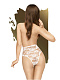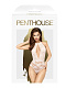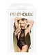 Сексуальное боди с глубоким вырезом. Дизайн выполнен в виде мелкой сетки, дополненной контрастным ажурными вставками, подчеркивающими изгибы тела.