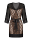 Короткий пеньюар Allunes выполнен из прозрачной ткани и ткани с элегантным чувственным леопардовым принтом, рукава 3/4 из прозрачной ткани, низ пеньюара и рукава с сатиновой отделкой, атласный пояс в комплекте.