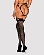 Женские чулки из сетки с геометрическим рисунком визуально вытягивающим ноги. Верх из гладкого материала типа экокожи с кокетливыми вырезами по бокам, предназначены для ношения с поясом.