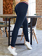 Женские легинсы из плотного хлопкового трикотажного полотна синего цвета. Особое украшение модели – спортивная резинка в сине-красно-белую полоску, которая мягко и уверенно фиксирует легинсы на бедрах. Средняя посадка.