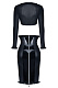 Erna – это удовольствие и соблазнение в лучшем своем проявлении. Комплект состоит из длинной юбки с молнией сзади и болеро, эффектно подчеркивающим грудь благодаря окантовке из ткани с «мокрым» эффектом. Юбка полностью изготовлена из эластичного материала, что позволяет изящно подчеркнуть силуэт, а благодаря уникальному крою – визуально уменьшить талию. Но особое внимание нужно уделить застежке. Кроме того, что молния выполнена из металлического сплава и не окисляется при стирке, она добавит нотки пикантности и эротизма, так как вы сможете расстегнуть юбку не только вверх, но и вниз. В комплекте: юбка, болеро.