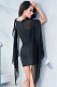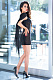 Мини-платье из плотной ткани, по бокам вставки из сетки, на шее застёжка, на руки ниспадает длинная вуаль.