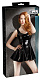 Черное мини-платье с расклешенной юбкой и застежкой-молнией сзади, имеет глубокий вырез спереди и сзади.