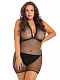Эротическое мини-платье с треугольными мягкими чашками, отделанными кружевом с волнистым краем, и завязками вокруг шеи и на спине. Трусики не входят в комплект!