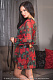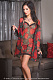 Черный халатик из нежного и мягкого полупрозрачного материала с принтом ярких роз. Края полочек обшиты атласом, в комплекте широкий гладкий поясок.