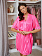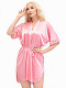 Короткий халатик из шелковистого трикотажного однотонного полотна прямого силуэта, свободного покроя, с запахом под пояс. Цельнокроеный короткий рукав по низу отделан эластичным кружевом в тон. По бокам закруглённые разрезы. Соответствие размеров: F - 42-50.