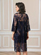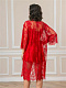 Короткий халат на запах из кружева с поясом, декорированный атласом по борту.