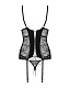 Корсаж женский из серии Laurise. Эластичный корсаж из ткани с кружевными вставками, визуально вытягивающими силуэт, бюстгальтер на косточках, бретельки регулируются по длине, на спине корректирующая размер шнуровка, к подолу прикреплены подтяжки для чулок. В комплекте: корсаж и трусики-стринги.