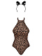 Игривый комплект дикой кошечки Leocatia состоит из боди с леопардовым принтом и ободка с ушками. Боди идеально облегает тело, спинка открытая, бретель фиксируется за шеей. В комплекте: боди, ободок.