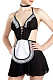 Стать роковой обольстительницей можно с эротическим костюмом горничной от Impirante. Невесомое, прозрачное мини-платье выполнено в черно-белых цветах. Материал очень нежный, тактильно приятный. Ткань грациозно ложится по фигуре и изящно подчеркивает силуэт тела. Кокетливая длина юбочки открывает соблазнительный вид на бедра и ножки.