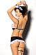 Игривый комплект горничной, в комплект входят: бюстгальтер, выполненный из тончайшего французского кружева, юбочка, состоящая из  шифона и украшенная тем же кружевом, а дополняют комплект кружевные подвязка, манжеты и головной убор. В комплекте: лиф, юбка, подвязка, манжеты, головной убор, трусики-стринги.