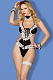 Сексуальный костюм горничной из 5 предметов. В комплекте: боди, чокер, манжеты, подвязка на ногу.