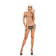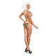 Интересный женский комплект, состоящий из лифа и повязки на бедра. Костюм цвета хаки, на тонких бретелях, прикрывающий интимные части тела оригинальными листьями. В комплекте: лиф, повязка на бедра.