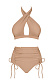 Экстравагантное бикини песчаного цвета. Высокие трусики-плавки с утягивающими завязками полностью прячут животик и визуально удлиняют ноги благодаря максимально высоким вырезам. Ягодицы остаются открытыми.
