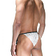 Мужские трусы-танга, из кружевного полотна белого цвета. Танга завязываются по бокам на тонких черных веревках с двух сторон.