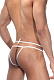 Белые мужские трусы-джоки. Верхняя бретель может быть завязана вокруг талии или бантиком прямо на гульфике-мешочке.