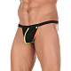 Черные сексуальные трусы-стринги с оранжевой и салатовой окантовкой