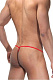 Гладкие тянущиеся минимальные стринги для мужчин ярко-красного цвета, на очень тонких резинках, V-формы сзади.