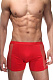 Красные гладкие трусы-боксеры для мужчин. Резинка у трусов широкая, по бокам полупрозрачные вставки.