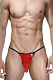 Откровенные мужские стринги из мелкой красной сетки, на очень тонких черных резинках.