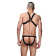 Мужское черное боди из гладкой, блестящей ткани с открытой грудью и открытыми ягодицами. Подобный комплект станет отличным дополнением к вашей игре и поводом начать экспериментировать.