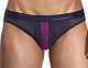 Сексуальные мужские трусы-слипы из прозрачной тёмно-синей сеточки, спереди украшены контрастной сиреневой полоской. Мягкий и эластичный, очень лёгкий материал. На поясе стильная пришивная резинка со стилизованными латинскими буквами «DA», как символ бренда «Doreanse». Передняя панель без подкладки.