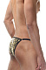Золотистые мужские трусы-танга с принтом в виде букв.