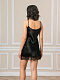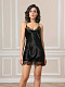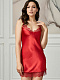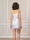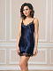 Короткая сорочка на узких бретелях из искусственного шелка, декорирована кружевом по подолу и линии декольте.