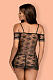 Черная полупрозрачная сорочка-бэбидолл Jennifairy с уникальным орнаментом и лентами спереди. В комплекте: сорочка и трусики-стринги.