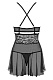 Об этой сорочке бэби-долл коротко можно сказать так – романтичная и при этом невероятно сексуальная! Выполненная из полупрозрачной нежной сетки и цветочного кружева, она состоит будто из двух частей – мягкого лифа и расклешенной юбочки. Спинка практически полностью открыта: её украшают лишь скрещенные регулируемые бретели. Зона декольте декорирована бантиком и кулоном. Трусики-стринги в комплекте. В комплекте: сорочка, трусики-стринги.