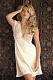 Элегантная ночная сорочка средней длинны полуприлегающего силуэта с v-образным вырезом горловины на полочке и спинке из искусственного шелка с жаккардовым переплетением и цветочным рисунком, а также с кружевным эластичным полотном. Сорочка с подрезом под грудью и мягкой драпировкой на чашках лифа. Верхняя часть полочки и спинки, а также короткий рукав, выполнены из эластичного кружевного полотна, которое великолепно сочетается с цветочным рисунком на ткани. По горловине спинки плечевые швы соединены завязкой из однотонного искусственного шелка. Нижняя часть полочки и спинки выполнены из искусственного шелка с цветочным рисунком. Спинка модели с средним швом.