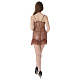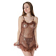 Прозрачная сорочка с принтом-паутинкой по всему полотну. Украшена рюшами на декольте и по низу подола. В комплекте трусики-стринги. Белье обработано феромонами. В комплекте: сорочка, трусики-стринги.