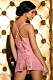 Восхитительная сорочка из стрейч-сетки, середина чашек лифа, середина переда и середина спинки выполнены из тонкого гипюра с цветочным орнаментом. Сорочка на регулируемых бретелях, на спинке крест на крест. Спинка декорирована маленькими бантиками. В комплекте: сорочка, трусики-стринги.