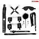Большой набор БДСМ в черном цвете: маска, кляп, зажимы, плётка, ошейник, наручники, оковы, щекоталка, фиксатор